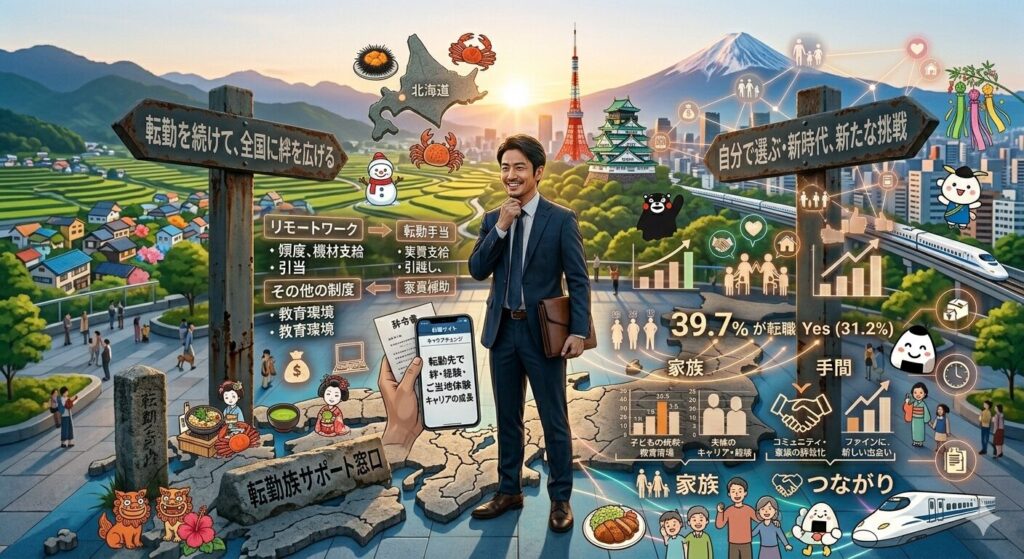 転勤は「個人の問題」ではなく「家族の問題」です。将来の転勤頻度、子どもの進学タイミング、パートナーの働き方など、今のうちに家族で戦略を立てておきましょう。