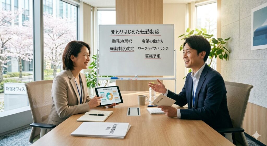 人事部や上司への意見として、勤務地選択制度の導入を求める声を上げることも、長期的には大きな変化につながります。