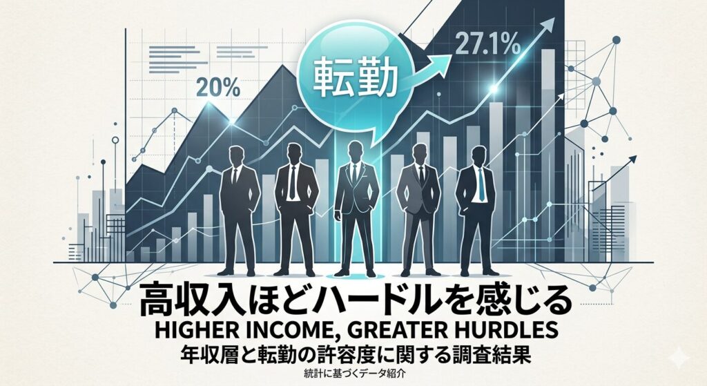東京商工会議所が実施した調査によると、独身男性の20.0%が転勤を結婚のハードルと感じていることがわかりました。さらに注目すべきは年収による違いで、年収700万円以上の男性に限ると、その割合は27.1%にまで跳ね上がります。